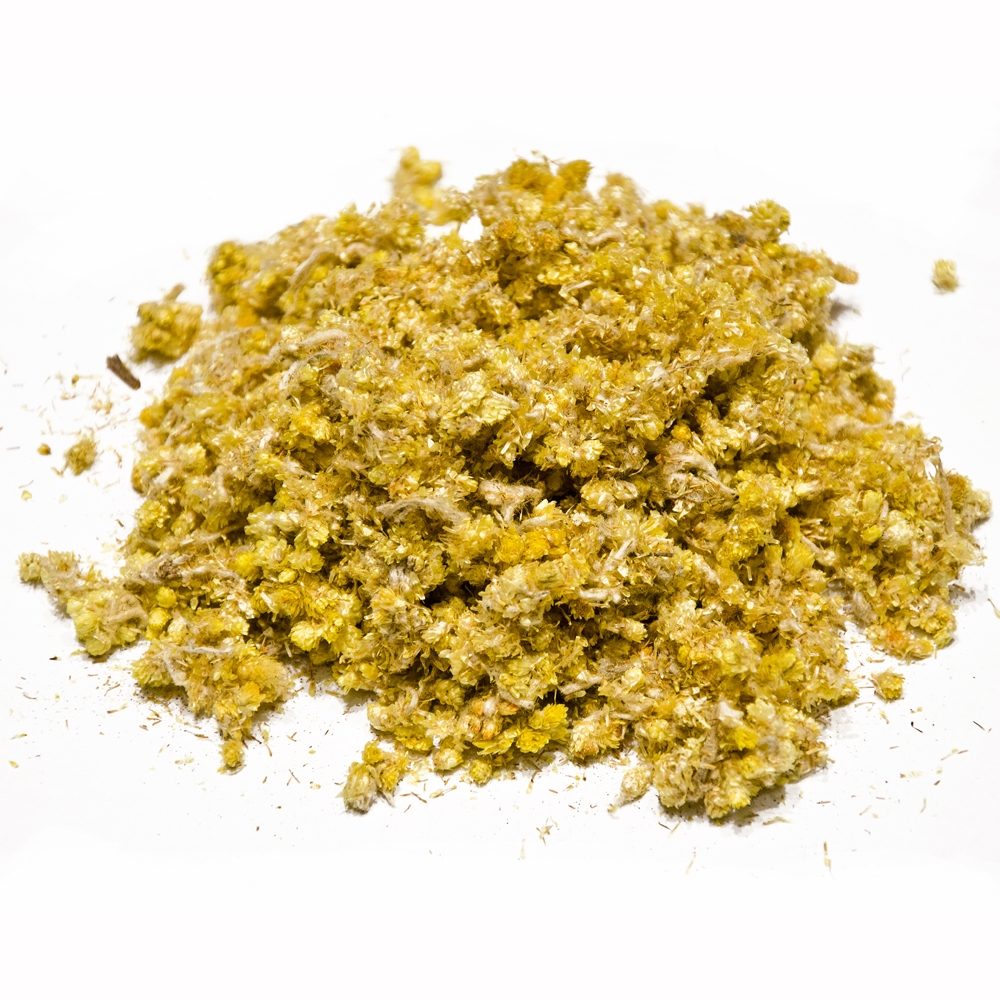 (Helichrysum) Jego olejek eteryczny, o silnym aromacie, jest stosowany w perfumerii i kremach kosmetycznych. Helichrysum był tradycyjnie stosowany w leczeniu infekcji węzłów chłonnych, astmy, artretyzmu, bólów głowy i robaków jelitowych. Homeopaci przygotowują nalewkę ze świeżej rośliny i stosują ją w przypadku dolegliwości pęcherzyka żółciowego i bólu krzyża. Zalecany jest przy bólach głowy i migrenach, bólach mięśni, nerwobólach i zespole jelita drażliwego. Jego silne właściwości rozkurczowe idą w parze z działaniem przeciwkatarowym. Olejek może również przynieść ulgę w przewlekłym kaszlu i astmie. Sposób użycia: Wlać 1-2 łyżeczki do szklanki ciepłej wody, moczyć (napar) przez 7-10 minut, przecedzić i wypić. Pochodzenie: Kreta